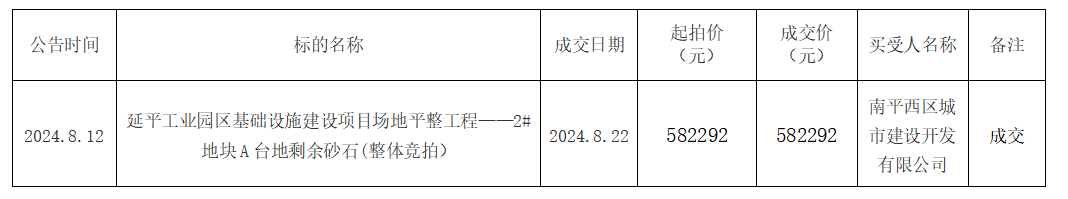 受南平市延平区工业发展中心委托,本次项目采用网络增价的竞拍方式,现将竞拍结果公示如下: