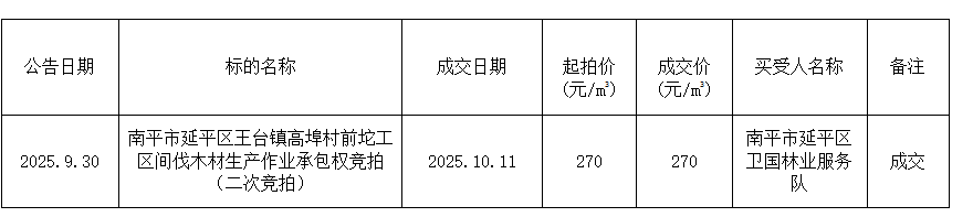 受南平市溪后林业发展有限公司委托,本次项目采用密封式(降价式)现场竞价的方式,现将竞拍结果公示如下:
